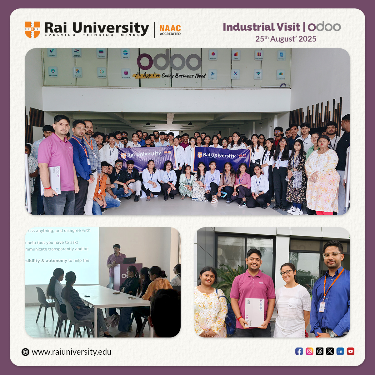 Rai School of Engineering is a constituent School of Rai University established in 2013 consists of MCA, B.Tech, BCA, B.Sc IT and Diploma Programs. RSE emphasizes on Skill Development, Project Based Learning and ICT enabled pedagogies to provide Outcome Based Education to the budding Student fraternity. RSE is powered by distinguished Faculties who focus on Quality Research Papers, Chapters and Books in addition to Patent publication and grant.